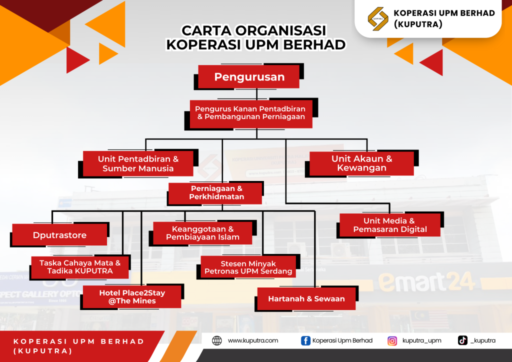 BARISAN KEPIMPINAN PENGURUSAN MUAT TURUN BORANG BORANG ANGGOTA BARU BORANG PERMOHONAN PEMBIAYAAN BORANG DERMA KUMPULAN BORANG SKIM GALAKAN AKADEMIK BORANG BERHENTI ANGGOTA BORANG TAMBAH KURANG YURAN SAHAM PERNIAGAAN TERKINI Stesen Minyak Petronas UPM Hotel Place2Stay@The Mines Keanggotaan & Pembiayaan Islam Taska & Tadika KUPUTRA Hartanah / Sewaan PERUNCITAN Dputrastore